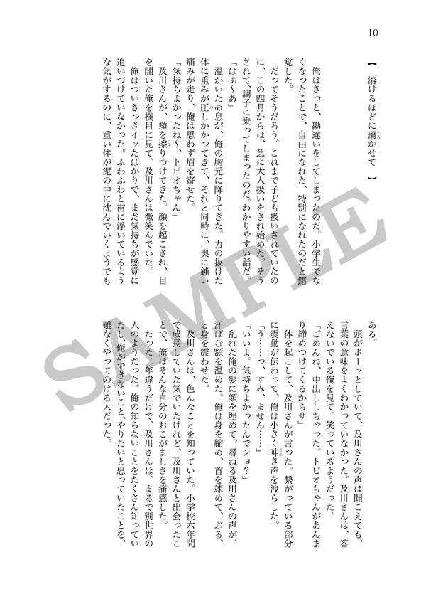 及川と名前も知らない女生徒のキスシーンを目撃してしまった飛雄。胸に宿る嫉妬を噛みしめながら、飛雄は及川との快楽に溺れてしまう。 北川第一時代の及川×影山本。