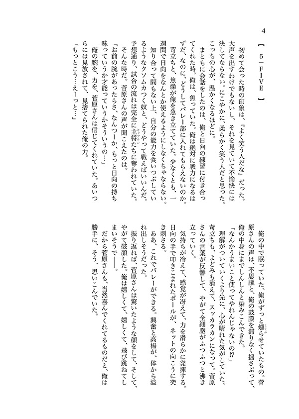 期末テストを間近に控えて、菅原は影山が寄り道をしないよう送る役目に立候補した。 道中、影山の洩らした不意の告白に、菅原は押し隠していた自分の気持ちに気づいてしまう。
