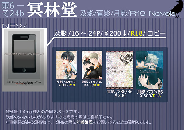 1/26の致死量1.4mg様との合同スペースで参加してきます。スペースNOは「東6そ-24b」です。久しぶりのイベントでもうわけがわかりません。新刊だけは死ぬ気で出したいと思います。死んだようになっていたらごめんなさい。